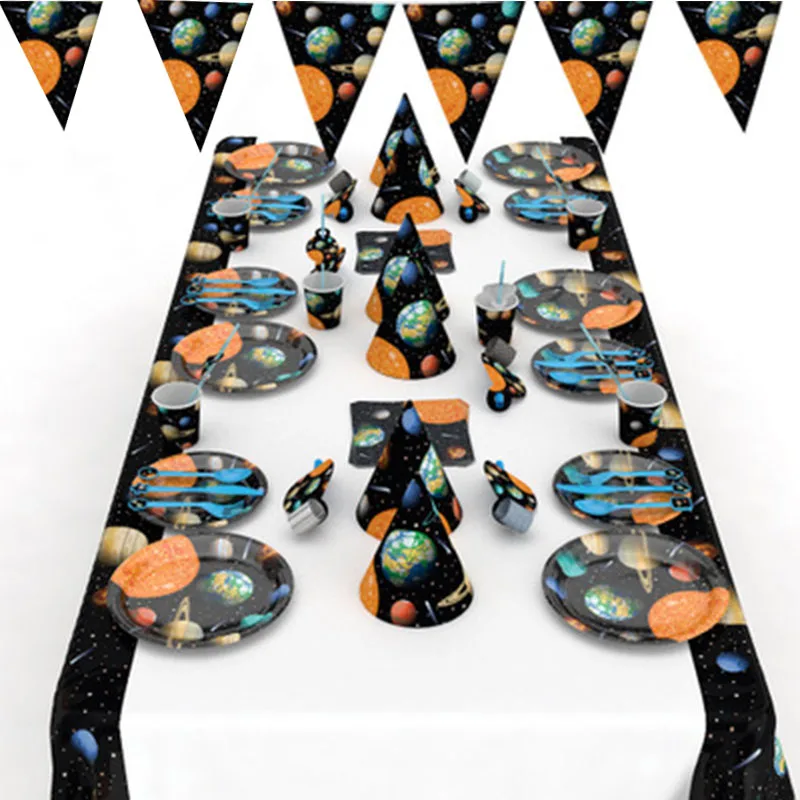 Внешнее пространство Декорации для дня рождения одноразовый набор столовых приборов чашки тарелки салфетки Дети День рождения астронавт товары для вечеринок