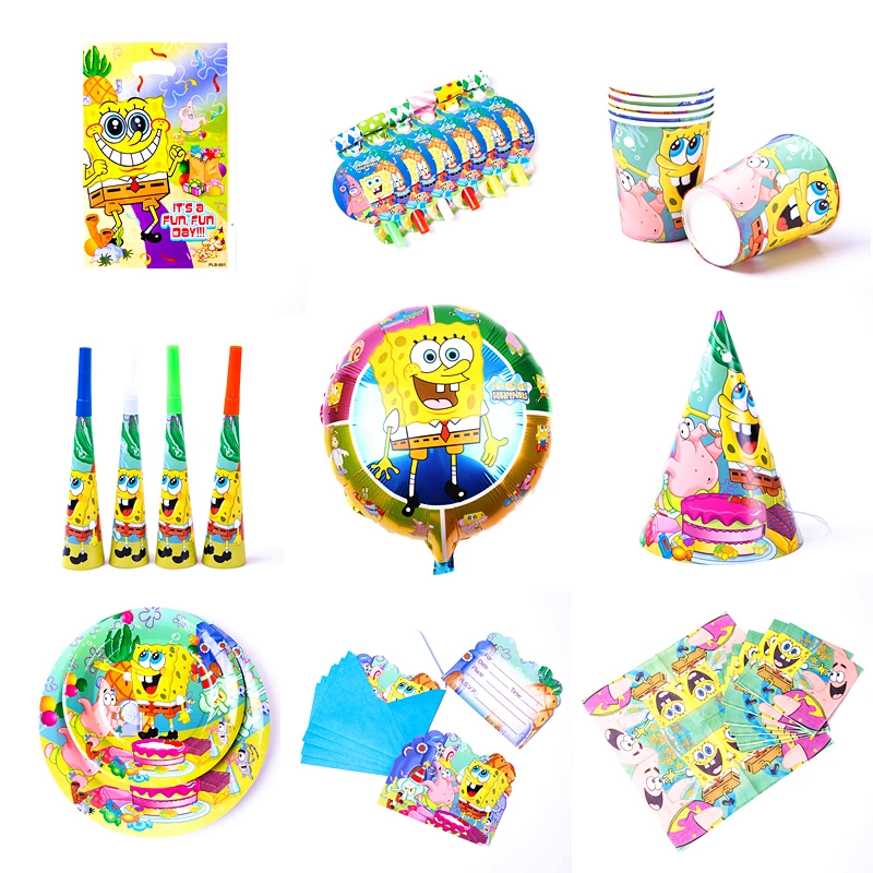 Губка Боб Дизайн Мальчики День Рождения украшения воздушный шар бумажные стаканчики и тарелки детский душ одноразовые принадлежности для посуды