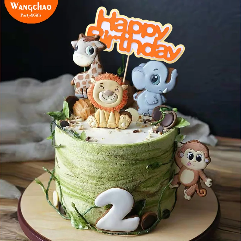 Животные в джунглях, жираф, Лев, обезьяна, тематический Топпер для торта, для вечеринки в стиле сафари, товары для украшение для торта «С Днем Рождения», Товары для детей