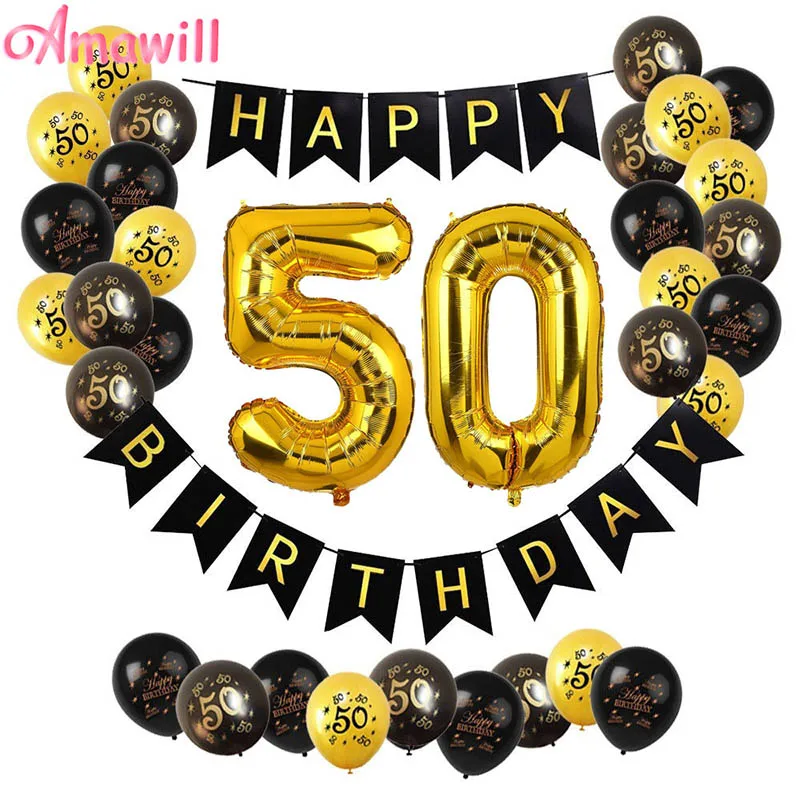 Amawil 50-й День Рождения украшения для взрослых счастливый плакат "с днем рождения" номер фольги Воздушные шары 50th лет украшение для вечеринки ...