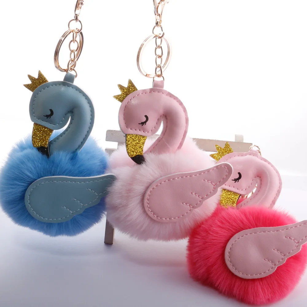 Симпатичные Корона Лебедь меховой шарик брелки для ключей для девочек Для женщин сумка украшения декоры детский душ игрушки подарки на ден...