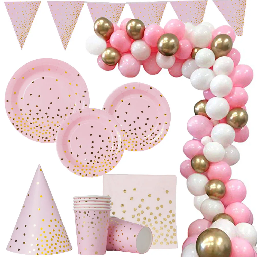 Розовое золото в горошек одноразовая посуда украшения для вечеринок воздушные шары-гирлянды арочный Комплект детский душ украшения для дня рождения