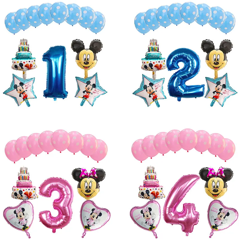 13 шт./компл. воздушные шары из фольги Микки и Минни 1 день рождения украшение номер баллон 1 Globos Dot латексные детские надувные игрушки