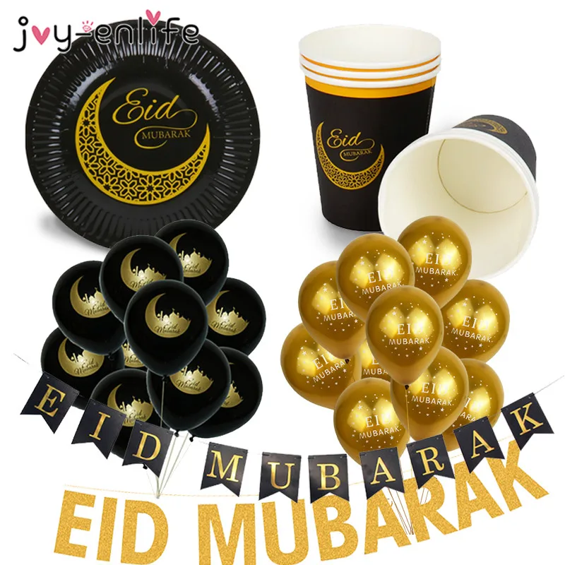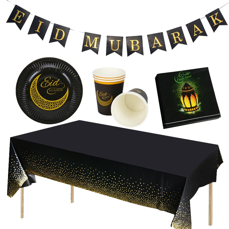 Eid Мубарак Декор баннер баннеры бумажные тарелки и стаканы салфетки скатерть украшение ИД шар Рамадан Мубарак декоратор для дома