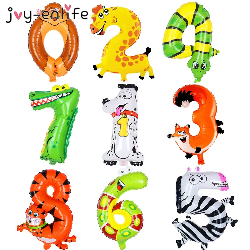 Мультяшные животные 0-9 цифры фольгированные шары джунгли сафари День Рождения Декор цифры воздушные шарики для день рождения вечерние укра...