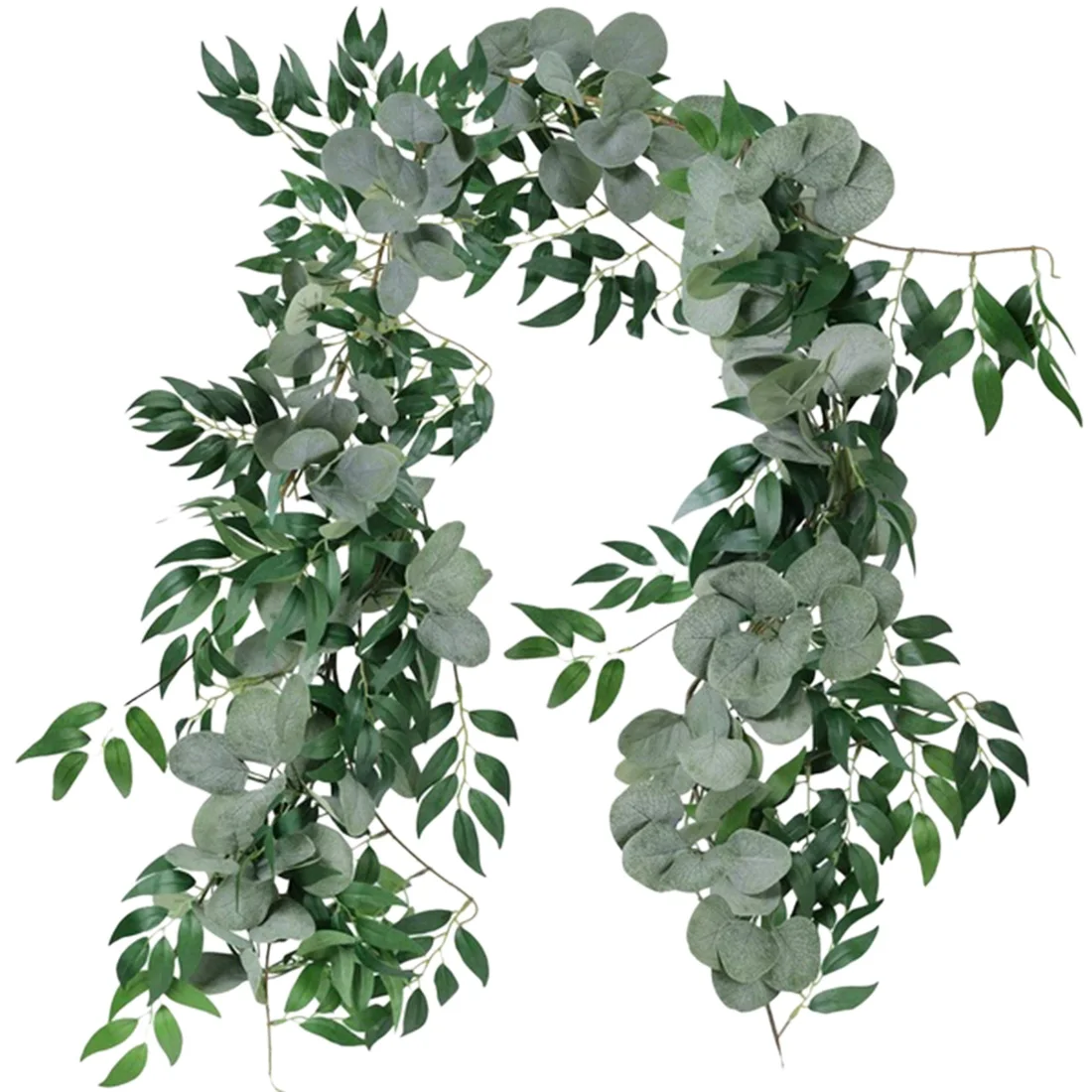 2 м Смешанные искусственные серебряные листья эвкалипта и листья ивы венок свадебная АРКА фон зеленая гирлянда