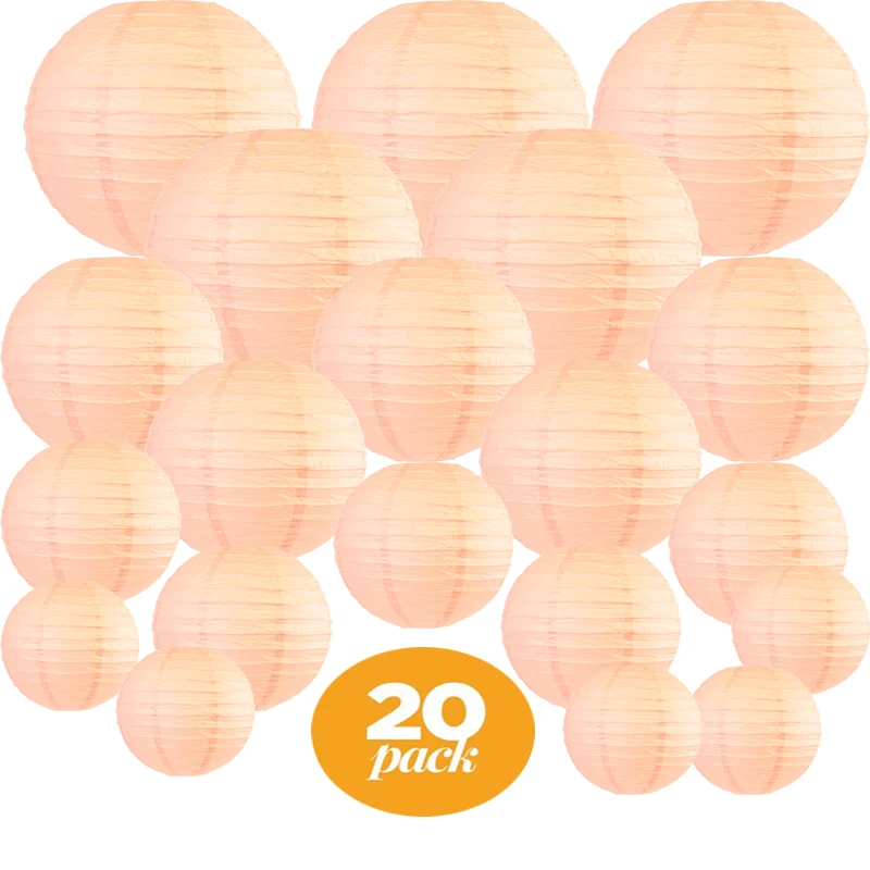 20 шт 6 "-12" Персик Китайский бумажный фонарик различные размеры круглый лампион для Свадебная вечеринка lampionnen Крытый висит декор