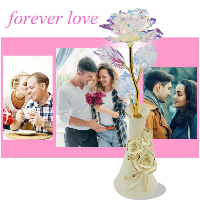 Искусственный цветок розы, Asklove, 24 K, покрытая фольгой, роза, керамический цоколь, роза, вечная любовь, День Святого Валентина, подарок для девочки