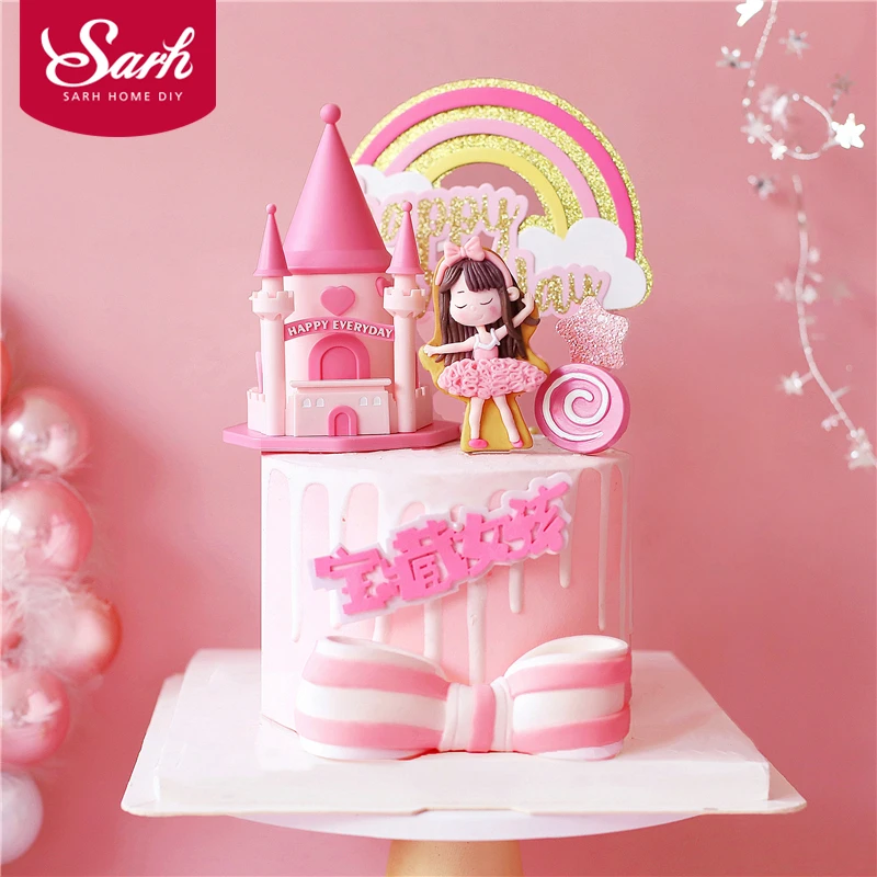 Розовое газовое украшение принцессы спиральная пряжа звезда для дня рождения топперы на свадебный торт вечерние поставки невесты ребенок ...