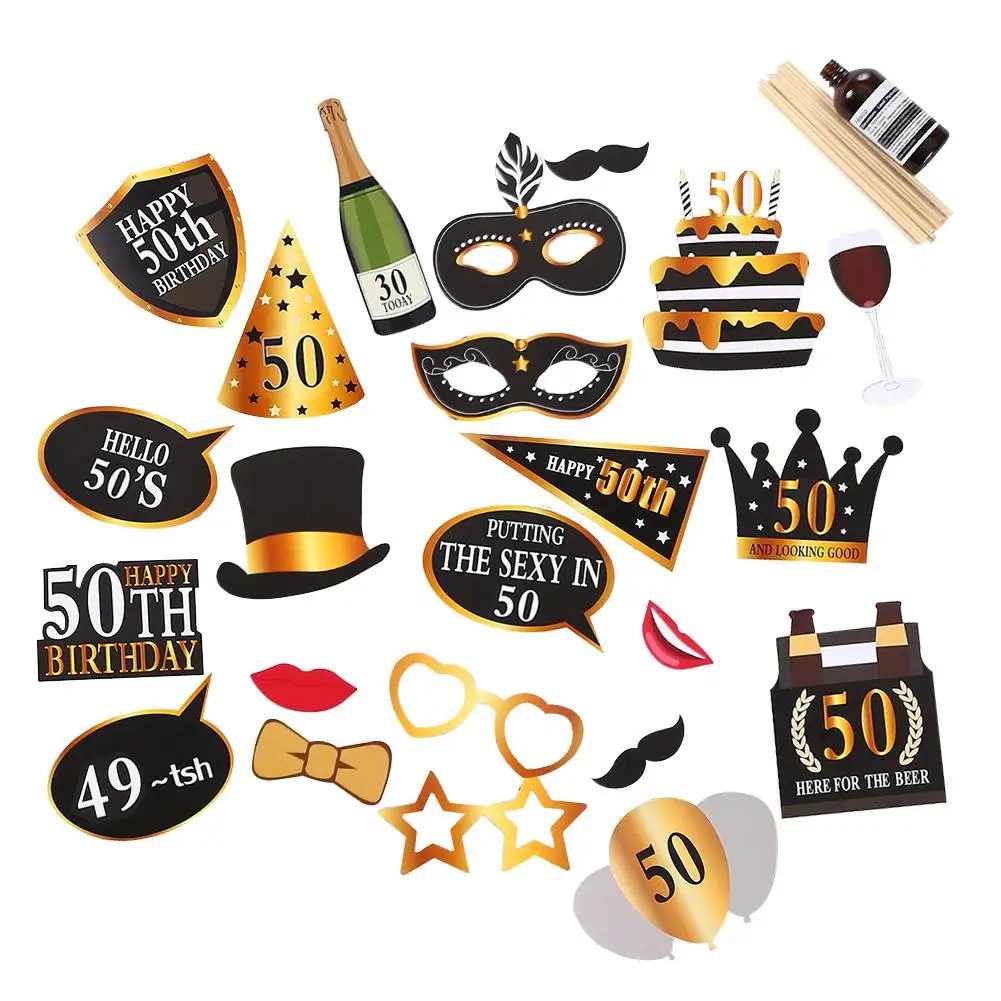24 шт./компл. 30th/50th/60th Happy Birthday Photo Booth Опора Юбилей День рождения мужские и женские Стиль Забавный подарок Декор поставки