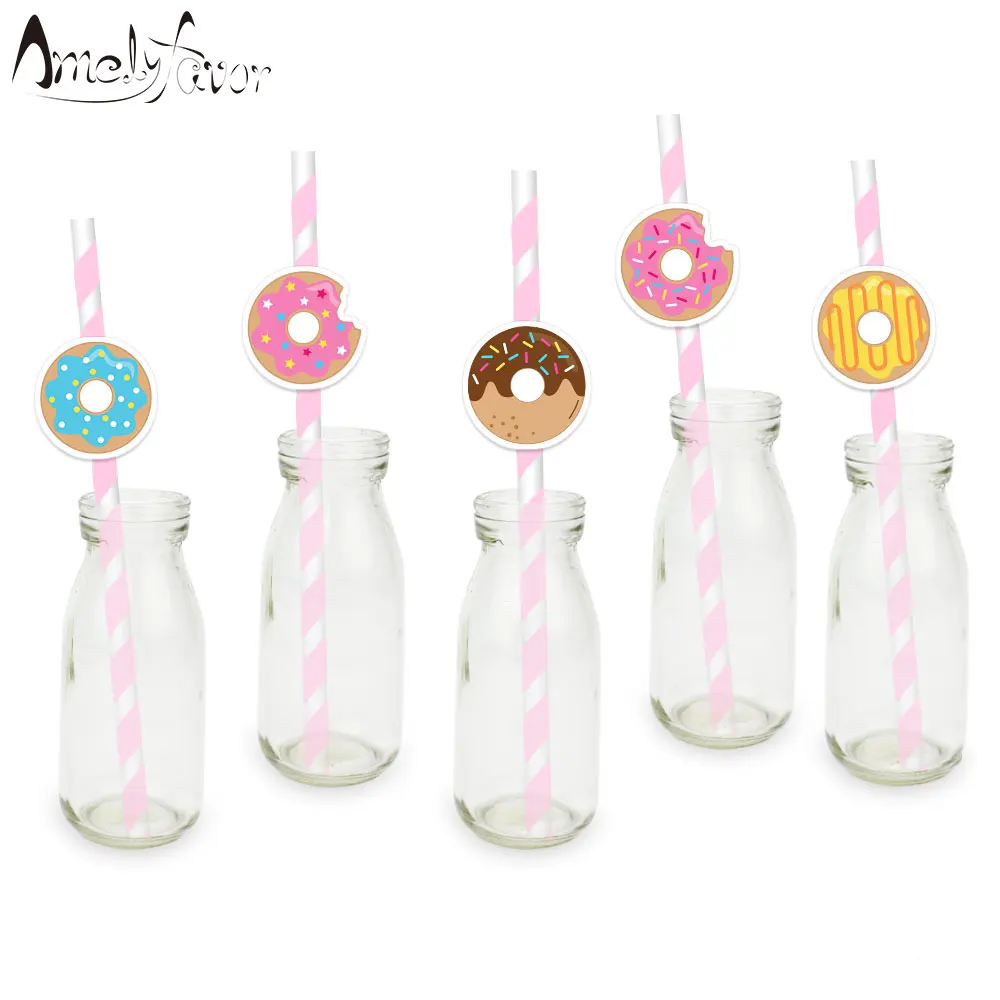 Пончики соломы 25 шт. Бумага соломки для дней рождения вечерние праздничные поставки украшение Бумага питьевой соломинки событие вечерние п...