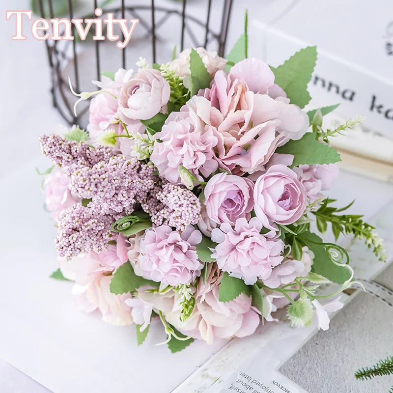 Скандинавские красивые искусственные цветы, Свадебный букет невесты, смешанный шелк, большие искусственные цветы для дома, украшение для стола