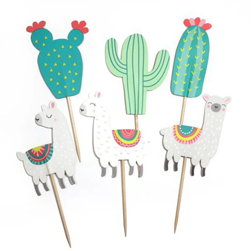 5 шт кактус Альпака Llamas Единорог торт Топпер украшения для капкейков свадебное украшение для торта ко дню рождения джунгли летних вечеринок