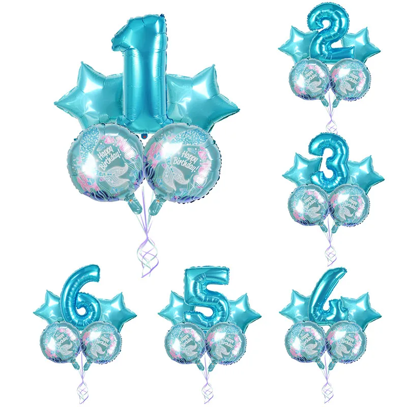 5 шт./компл. Русалка тема вечерние синий Фольга воздушные шары 32 дюймов шара с цифрой для детей День рождения украшения детский душ расходные...