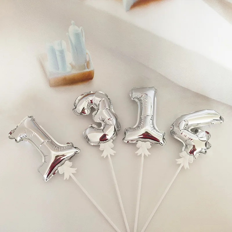 Самонадувающиеся мини золотые воздушные шары из фольги в виде цифр Торт Топперы с бантом Пластиковая Палочка Свадьба День Рождения Вечерин...