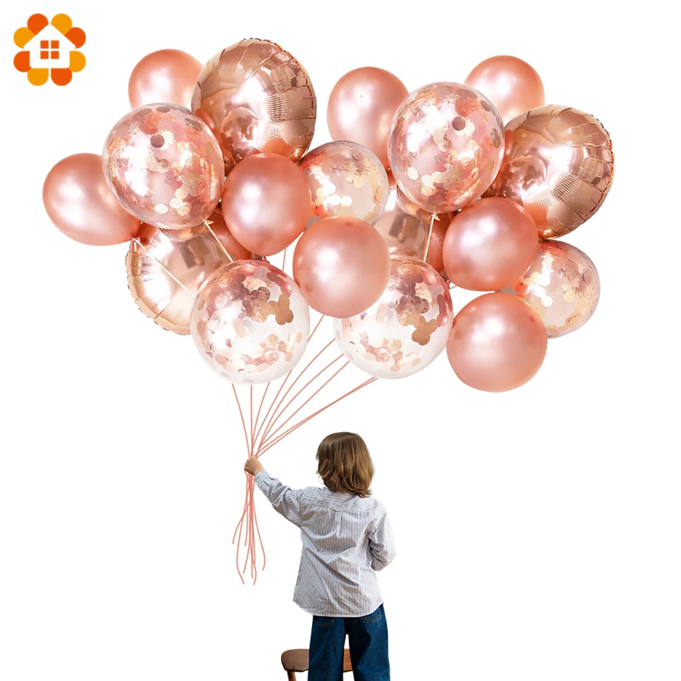 18 дюймов вечерние воздушные шары для вечеринки будущей матери, свадебные украшения 14 шт микс из розового золота конфетти воздушных шаров из латекса розового цвета