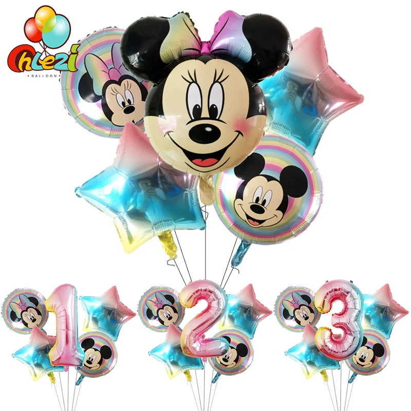 5 шт. новые градиентные воздушные шары с изображением Микки и Минни, украшения для дня рождения, Детский номер 1, 2, 3 года, 18 дюймов, цветные воз...
