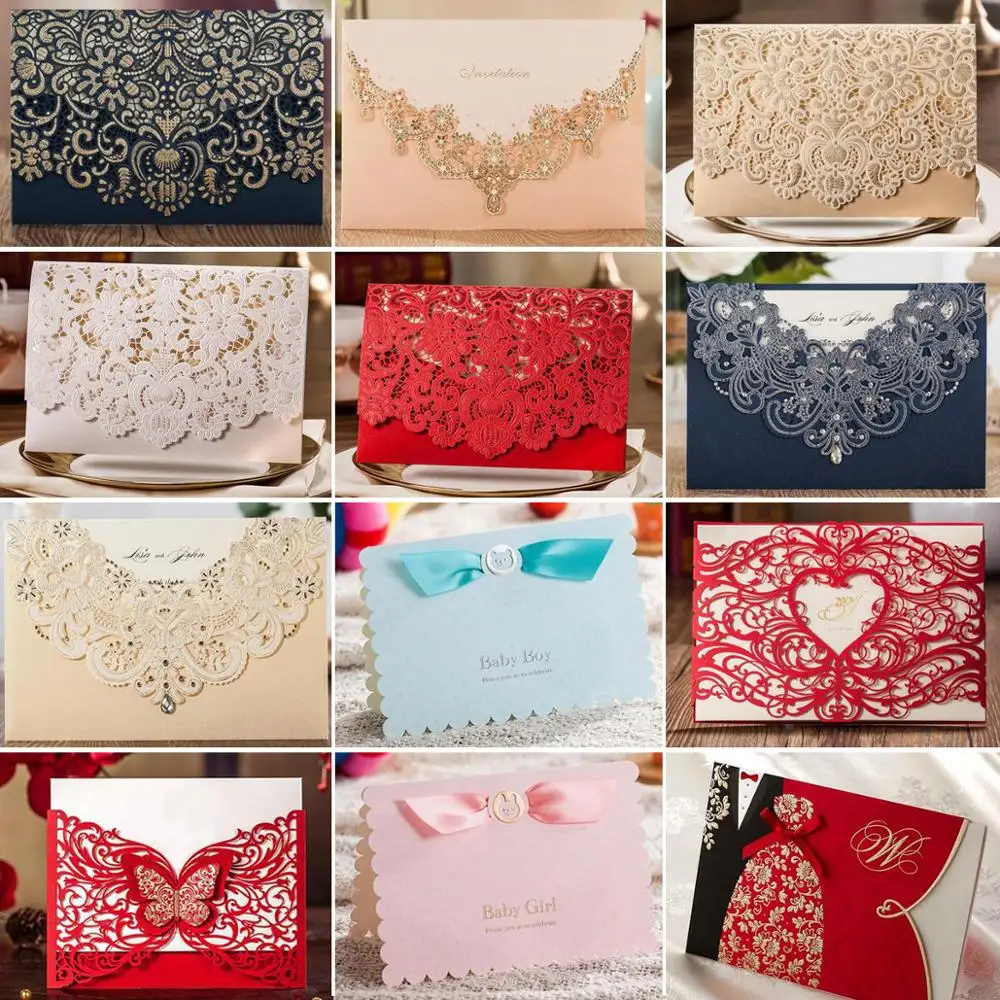 1 шт. лазерная резка свадебные пригласительные открытки с выдолбленным кружевом и конвертами для свадебного душа свадебные приглашения на день рождения