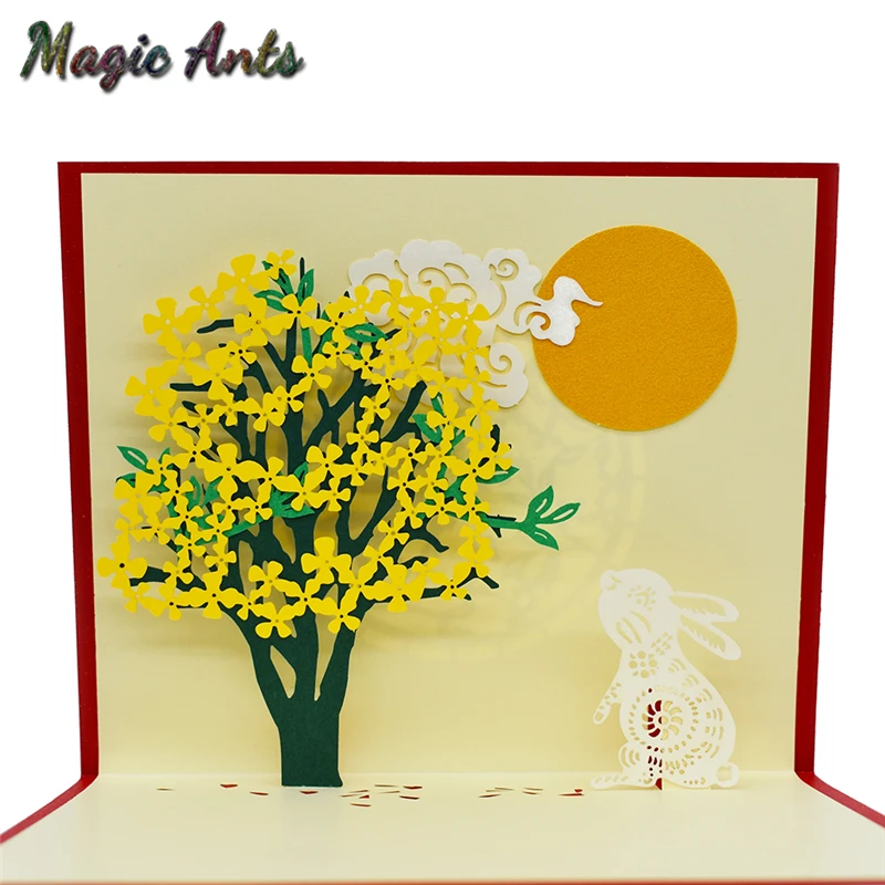 3D Кролик цветок всплывающие карты подарок на день рождения с наклейка на конверт лазерная резка животных Поздравительные открытки Mid-Autumn ...