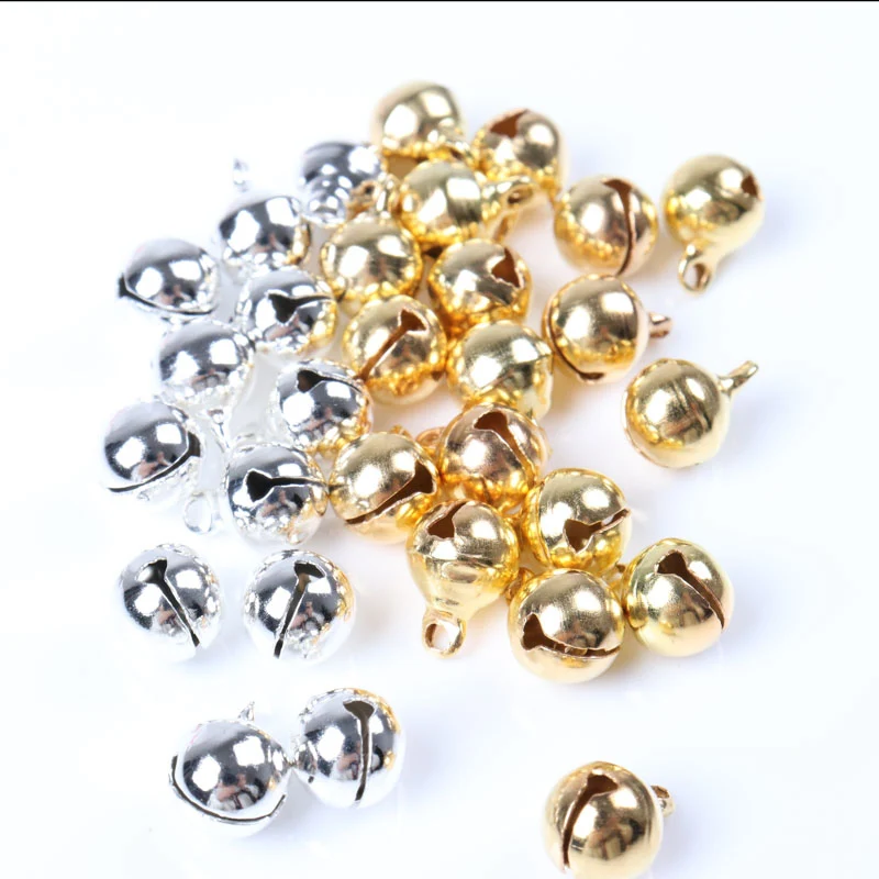 10 шт. 8 мм Jingle Bells цвета: золотистый, Серебристый покрытием Медь свободные шарики Малый для вечерние Рождественская елка деко украшения аксес...