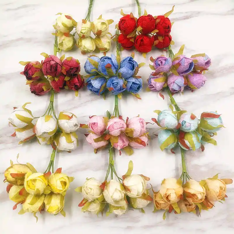 6 шт. (2 см/a) искусственные мини-букеты цветов чайные почки из шелковой ткани венок из DIY подарочной коробке/свадьбы Главная украшения сада