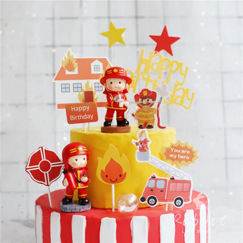 Пожарный герой украшения водяной пистолет лестница грузовик торт Топпер для детского дня ребенка с днем рождения поставки выпечки милый по...