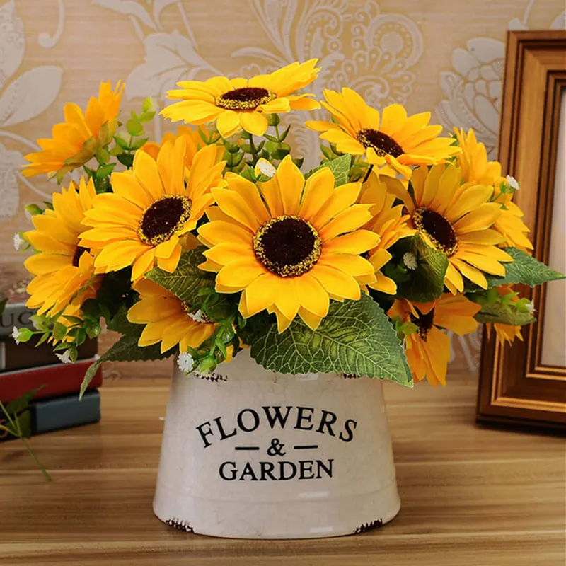 Желтый зеленый поддельные цветы Декор домашний сад классический свадебный фестиваль искусственный подсолнух 2017 пластик моделирование зав...