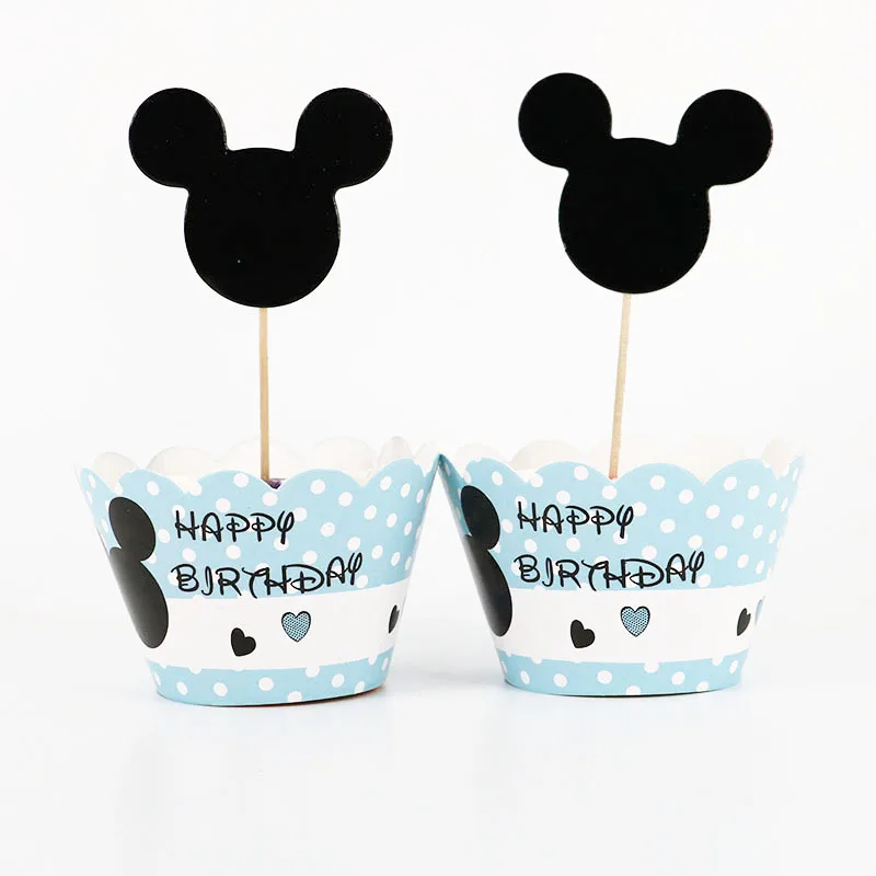 24 шт./лот Микки Минни Маус праздничные бумажные обертки для кексов Топпер для детской вечеринки на день рождения украшения для торта чашки (12 обертывания + 12 Топпер)
