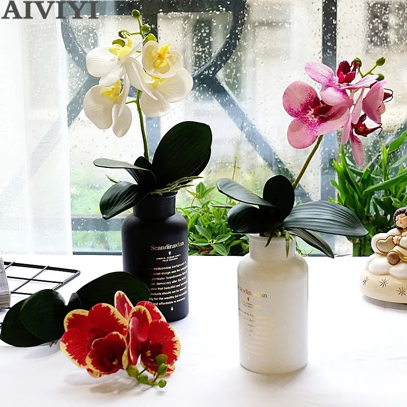 Новое маленькое дерево с листьями 4 головки искусственный фаленопсис Цветы Листья орхидеи высокого качества PU склеивания текстуры листья ...