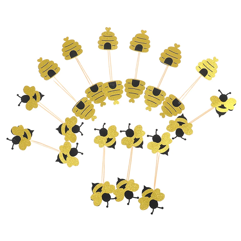 Горячая 12 шт. милый пчелиный Форма Кекс бумажный Топпер на торт День Рождения Торт пчела Фруктовые палочки Десерт декоративные принадлежно...