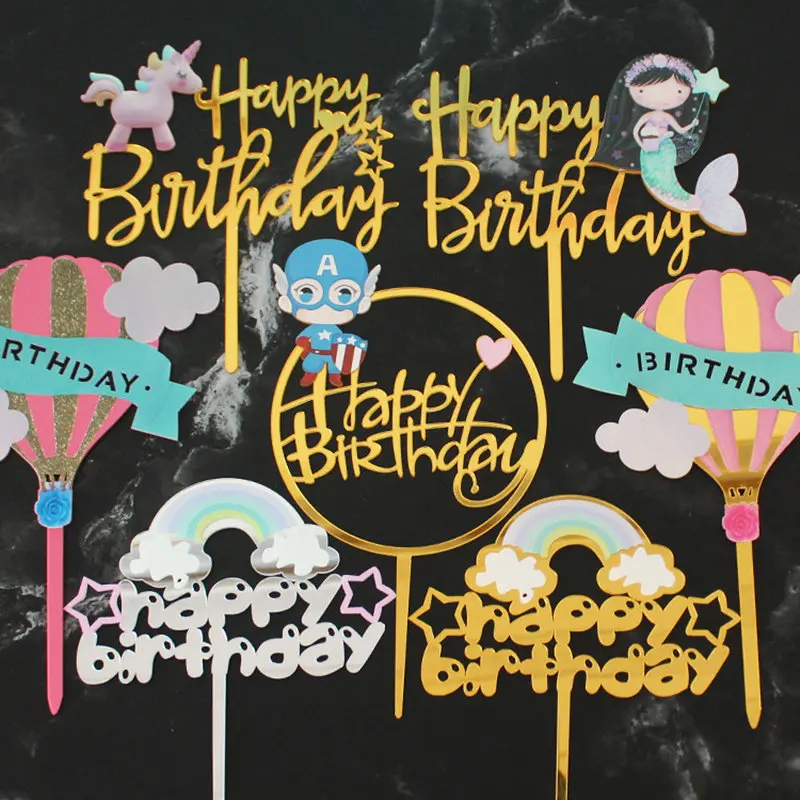 1 шт Единорог торт Топпер акриловая Русалка счастливые топперы для торта на день рождения для детского душа флажки для торта персонализиров...
