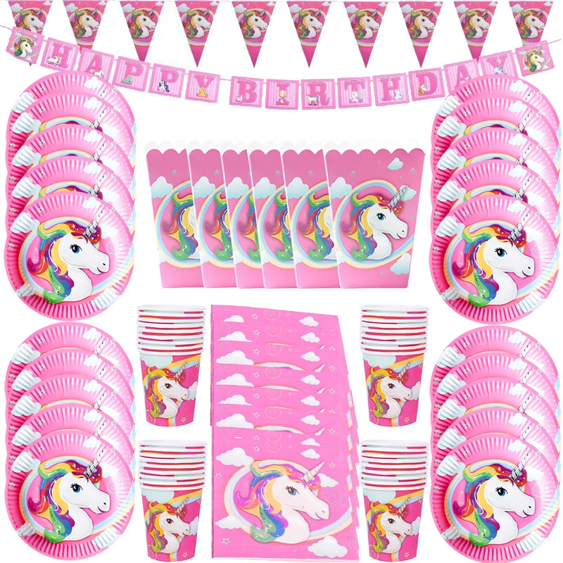 Одноразовые комплекты посуды WEIGAO, розовые/белые вечерние комплекты с единорогом для дня рождения