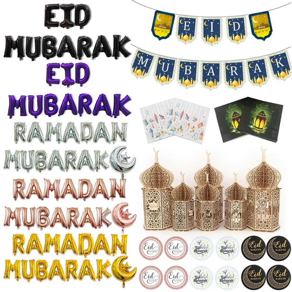 LAPHIL EID Мубарак фольга баллоны украшения для Рамадана EID вечерние бумажные баннерные салфетки Ид и Рамадан Декор мусульманские Вечерние принадлежности
