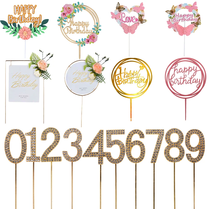 Акриловый Топ для торта на день рождения, искусственные цветы, цветочные фигурки для торта на день рождения, украшения торта, декор для торта