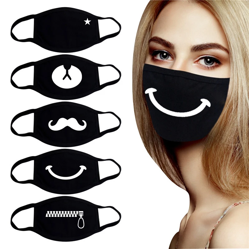 Дышащая хлопковая черная маска с забавным рисунком зубов для взрослых женщин и мужчин, уличная противопылевая ветрозащитная теплая маска