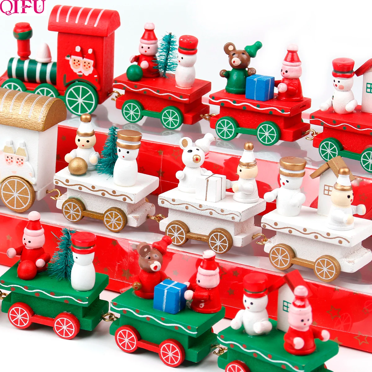 Рождественское украшение для дома, 4 узла, Рождественский поезд, расписанный деревянный с Сантой, детские игрушки для интерьера, Navidad 2019, под...