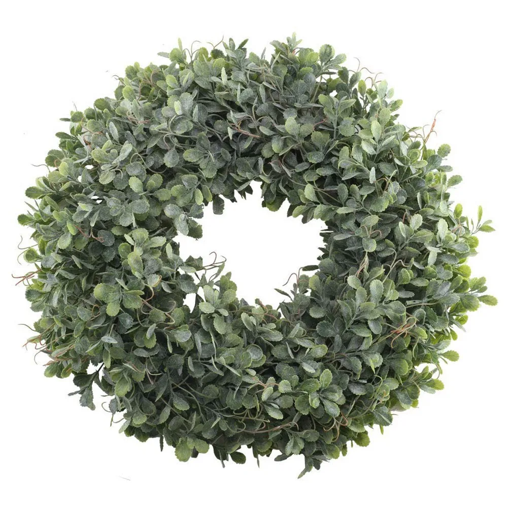Искусственные зеленые листья венок-17,5 дюймов спереди дверной венок основа трава самшита венок для стены окно вечерние Декор