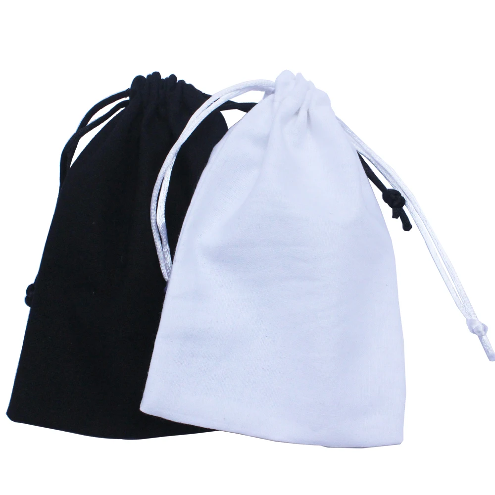 Черная сумка на шнурке из хлопка, белая Подарочная сумка из хлопка с логотипом на заказ (50 шт./лот)