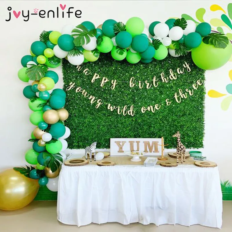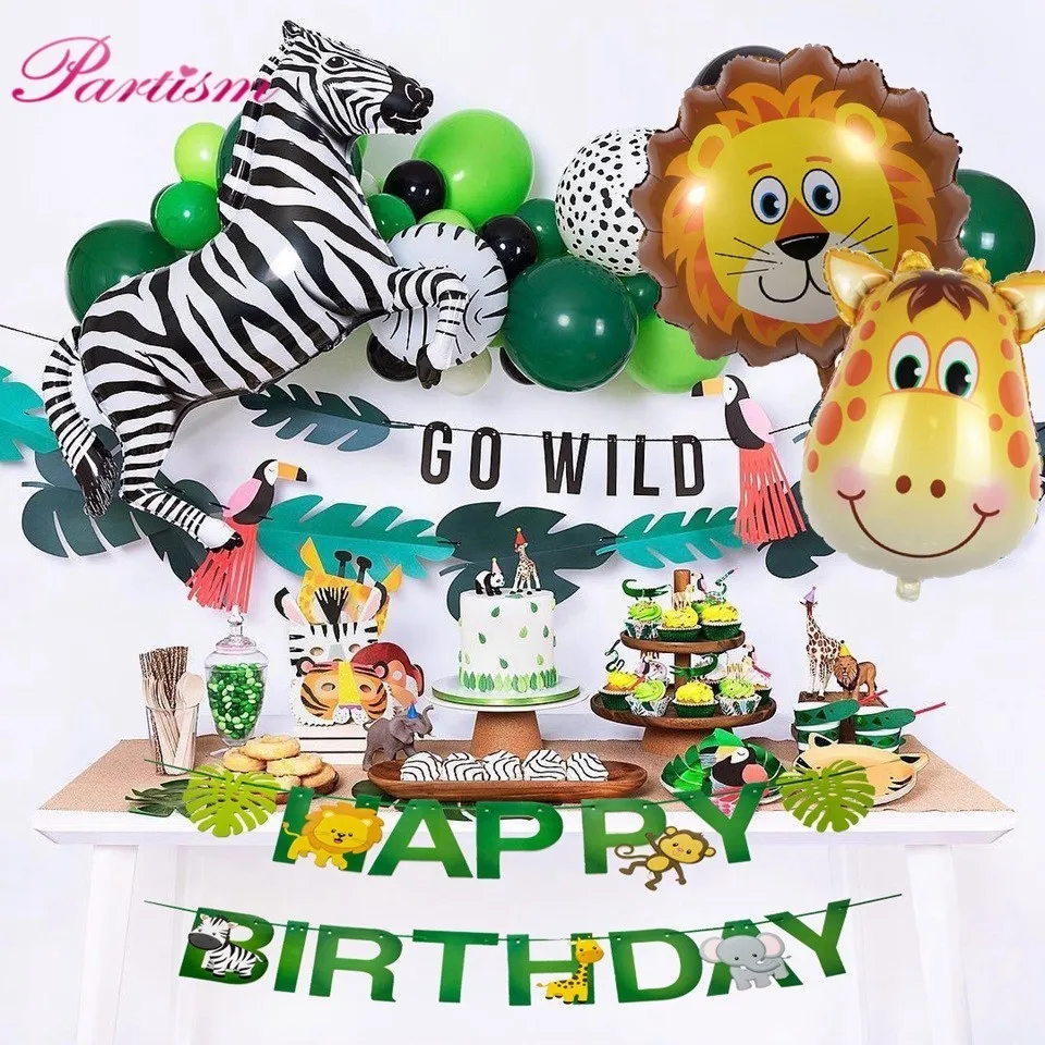 1 комплект джунглей вечерние животные счастливый плакат "с днем рождения" кекс Tableware посуда зеленый номер шарики, День подарков будущей мате...