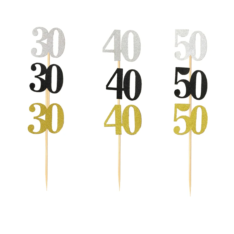 10 шт. 30 40 50 60 золото серебро кекс топперы выбор день рождения помолвки Свадебный декор