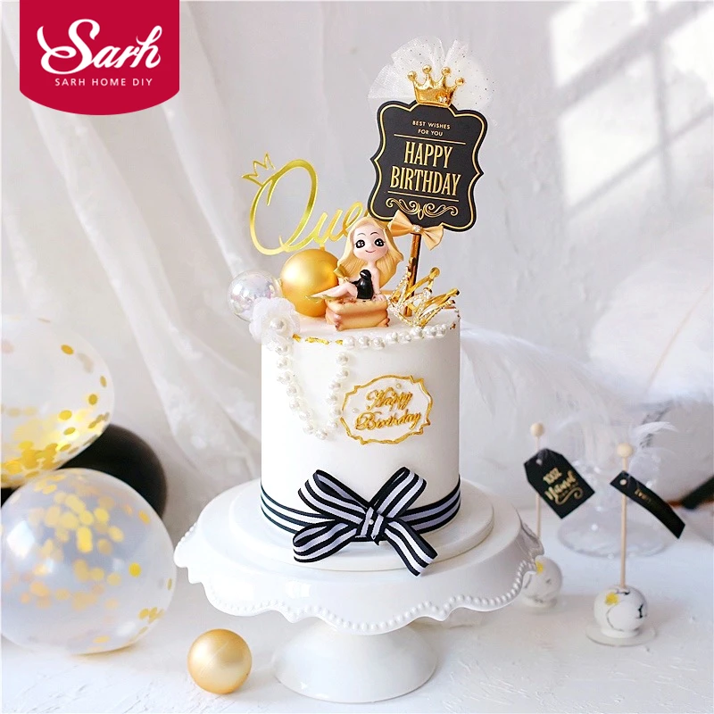 Черное золото благородная звезда лук крюк Топпер для торта «С Днем Рождения» вечерние украшения принадлежности для выпечки Юбилей Валентина Любовь Подарки