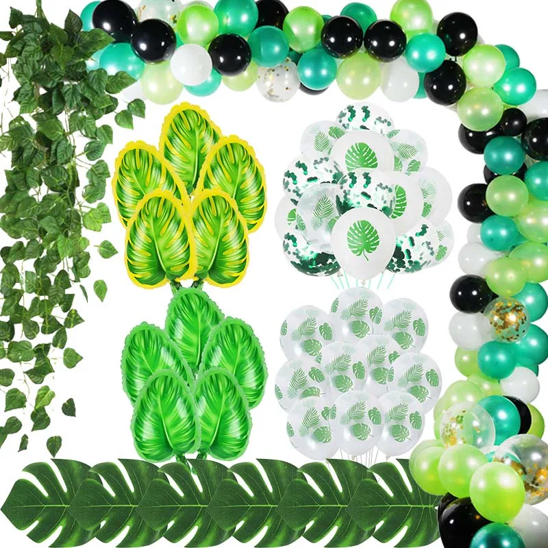 Зеленые латексные воздушные шары с листьями пальмы плюща вечерние украшения Monstera Hawaii Flamingo зеленые листья воздушные шары материалы на день рождения, свадьбу