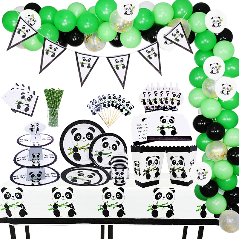 Тема фольга животное воздушный шар с пандой одноразовая тарелка чашка для вечеринки Посуда Свадьба детский душ Дети День рождения украшения поставки