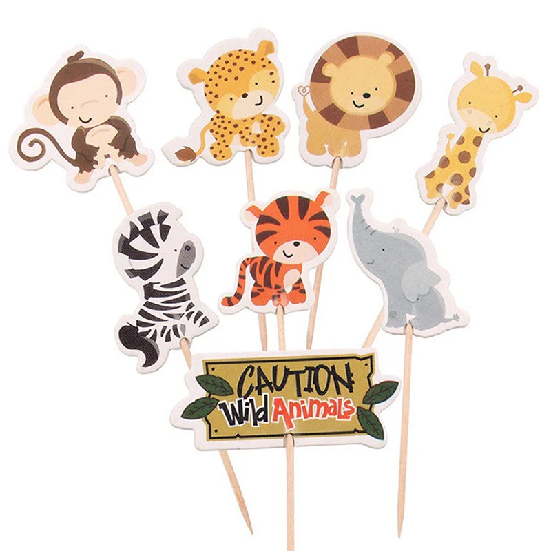 24 шт мультфильм животных торт Топпер джунгли сафари украшение для праздничного торта украшения для выпечки карты вечерние подарки малыш ук...