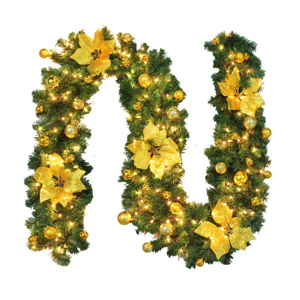 2,7 м Украшенные гирлянды с подсветкой, декоративные рождественские огни, Рождественская гирлянда для камина, лестницы, безделушки, цветы, Ро...