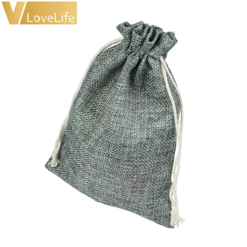 50 шт. 13*18 см натуральный Цвет джут холщевый мешок Drawstring Сумки конфеты подарок Бусины Jewelry Сумки для хранения /Свадебные украшения