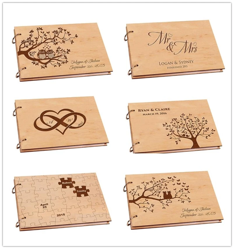 Персонализированные Свадебный фотоальбом, деревенский деревянный Свадебная Гостевая книга, A4 скрап-альбом для подписи, детские книги, свад...