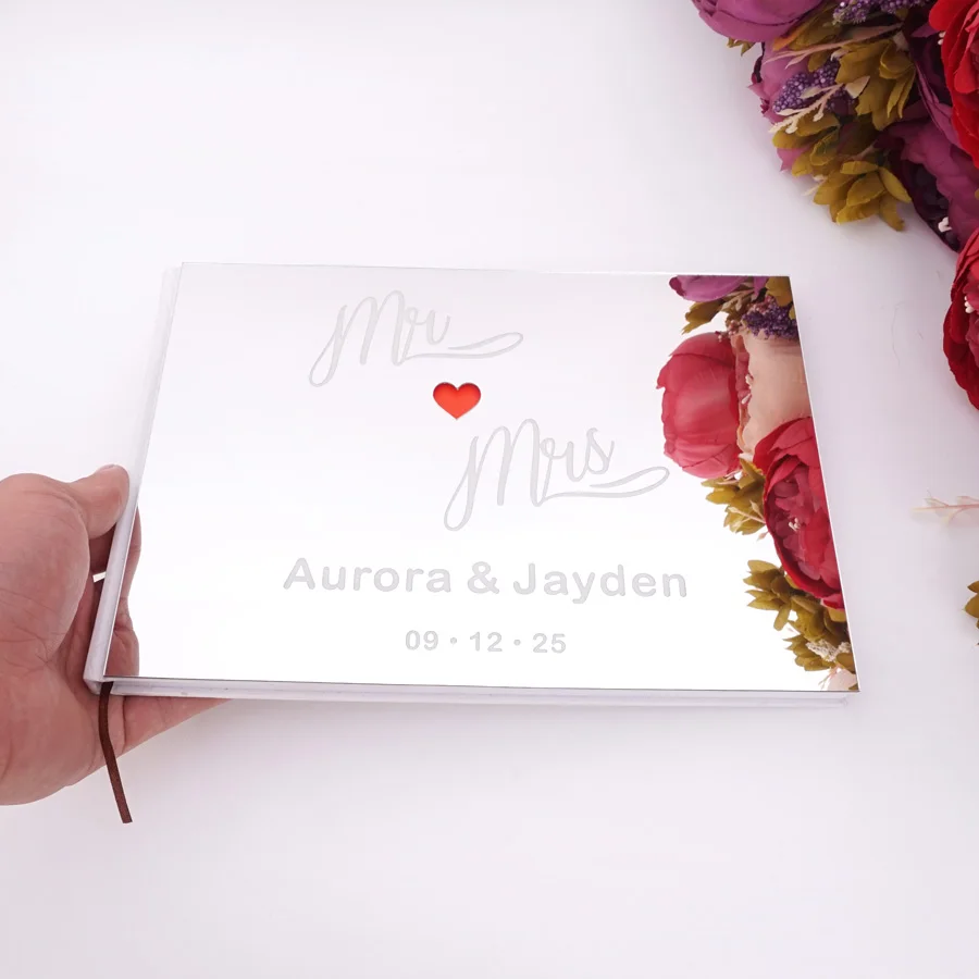 Персонализированные пользовательские Выгравированные имя и Дата милый Красное сердце Свадебные подписи Гостевая книга акриловые зеркаль...