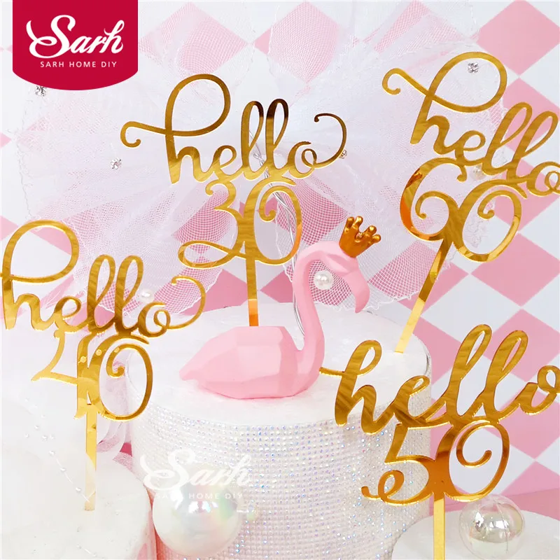 Золото "hello 21 30 40 50 60" ручная работа торт топперы С Днем Рождения украшения для юбилей поставки прекрасные подарки
