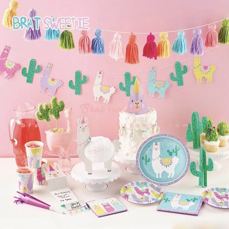 Llama вечерние Llama Альпака бумажные тарелки салфетки для стаканчиков одноразовая соломка поставки животных с днем рождения украшения для дет...